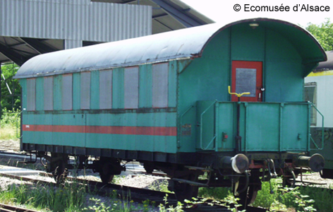 Arrivée à l’association Florirail en 1985 qui l’a restaurée en 1990. Précédemment à l’ASERMITA. Aurait circulée pour amener les mineurs travaillant au Carreau Rodolphe en gare de Bollwiller. Transférée en 2001 à l’Écomusée d’Alsace. Équipée de sièges d’autorails de 1e et 2e classe.