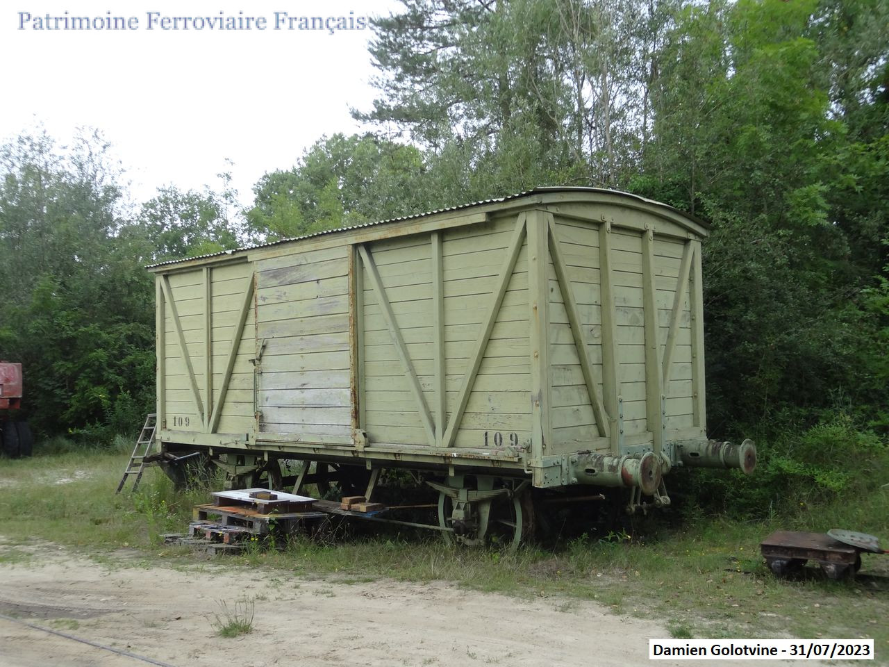 Caisse de couvert Saltley, montée sur un châssis de wagon d’origine P.O. Précédemment à l’Établissement Principal des Munitions (EPMu) de Salbris.