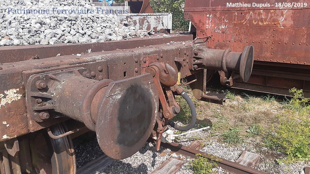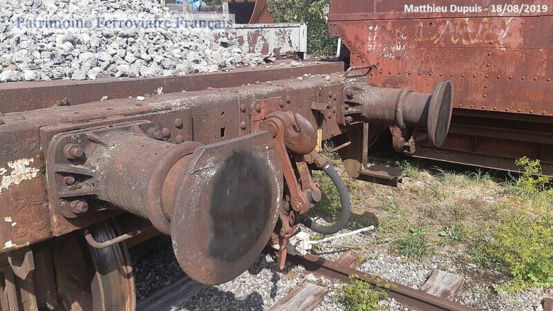 Donné par la Sollac à l’ALEMF. Possède encore sur une extrémité ses tampons anglais, ainsi que le volant de frein à main d’origine. Le plancher a été modifié par les usines de la Sollac pour permettre le transport de blooms et billettes sidérurgiques.