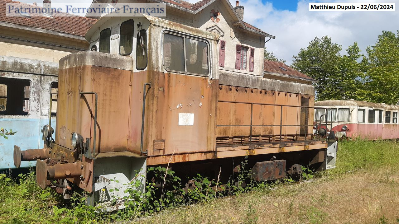 Engin livrée à l’Armée française, identique aux Y-7400 de la SNCF. Origine exacte à déterminer. Situé en gare de Wassy, propriété de l’AGW, qui l’a repeint en rouge et blanc.