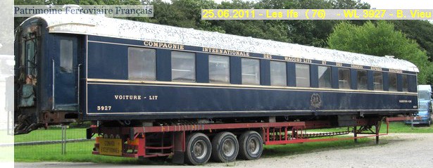 Préservée par l’AJECTA à Longueville en 1989, puis par M. Guyot au Château de la Ferté à La Ferté-Saint-Aubin (Loiret). Mise en vente aux enchères le 05 juin 2010 et acquise par le Camping de de la Plage à Damgan (Morbihan). Rachetée par Frédéric Delahaye et stockée sur une remorque côté de la gare de Tourville-les-Ifs jusqu’en 2012. Acquise par la société « Orient Express Paris » à Issy-les-Moulineaux, puis remise en état de présentation pour l’exposition « Il était une fois l’Orient Express » en 2014. Cependant, pour une raison inconnue, les soufflets d’intercirculations ont été remplacés par des bourrelets UIC, le système de freinage et tout les éléments situés sous le châssis ont été démontés. L’aménagement intérieur est néanmoins quasi-complet et en bon état. Propriété de la SNCF, stockée dans les réserves de la Cité du Train.