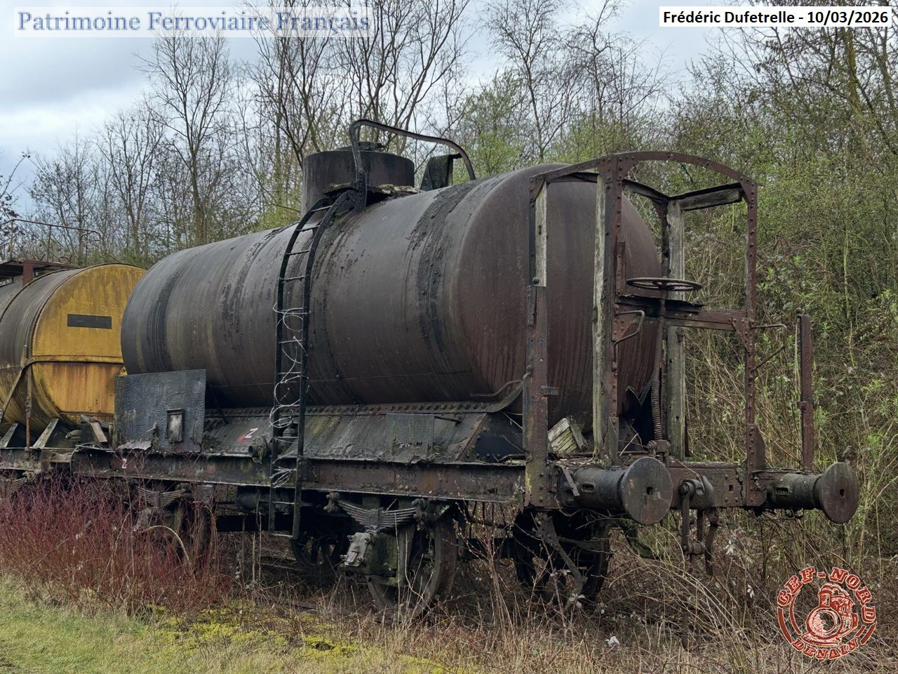 Équipée d’une guérite de serre-frein. En mauvais état, châssis fortement corrodé et perforé à une extrémité. Utilisée par la Compagnie des Mines de Crespin, puis par les HBNPC avec le numéro 948 à la cokerie de Lourches pour le transport de goudron. Offert par les HBNPC au CEF Nord et réceptionnée en septembre 1984. Ferraillée le 17 mars 2026.