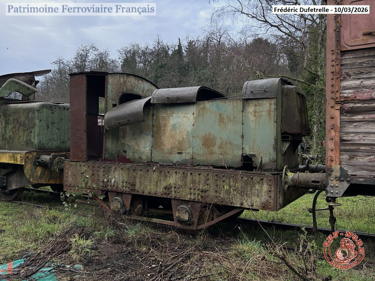 Construction artisanale sur un châssis ancien équipé de boîtes d’essieux Isothermos datant de 1919. Le radiateur de refroidissement provient d’un char d’assaut allemand incendié devant les usines Cail à Denain en septembre 1944. Boîte de vitesse mécanique FLOHR. Entraînement des essieux par engrenages droits. Utilisé par la société Tensia à Escaudain (Nord), et donné au CEF Nord. Arrivé le 6 mai 1987 à Denain. Ferraillé le 19 mars 2026.