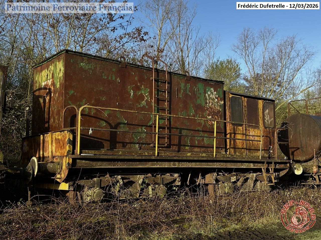Wagon désherbeur réalisé sur un châssis de tender de locomotive allemand construit par la Vereinigte Westdeutsche Waggonfabriken AG (Westwaggon) en 1942 (numéro 170515). Bogies de fabrication allemande également construits par Westwaggon. Utilisé par Usinor avec le numéro 775 01 puis par les Ateliers de Denain. Arrivé au CEF Nord juin 1996. Ferraillé le 17 mars 2026.