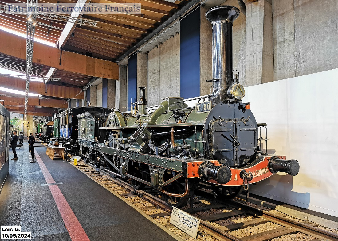 Livrée pour la Compagnie du chemin de fer de Paris à Strasbourg, numérotée 80 et baptisée « Le Continent ». Le tender a deux essieux, construit par Ateliers de Graffenstaden en 1852 (numéro 65), port le numéro 122 du chemin de fer de Paris à Strasbourg. Dernière circulation en service commercial le 31 juillet 1914. Lieux de préservation : remise en état d’origine aux Ateliers d’Épernay en 1925 ; Gare de l’Est de 1931 à 1947 (exposition) ; remise en état de circulation à Épernay en 1947 (…) ; Cité du Train.