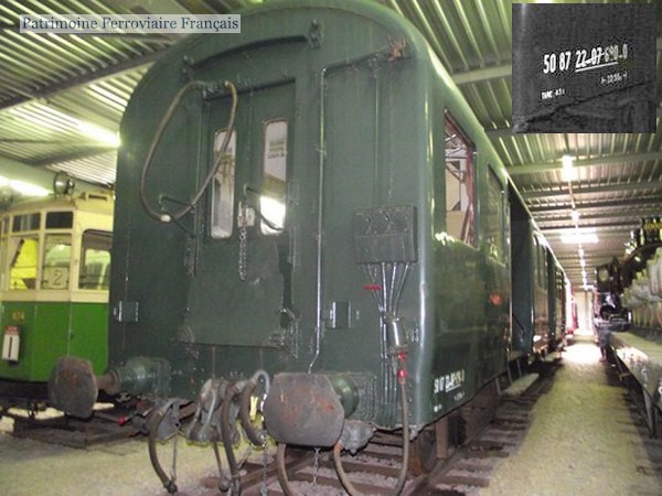 Cette voiture est présentée comme la Bz 50 87 22-07 690-0, selon ses marquages extérieurs. Mais il s’agit bien de la 50 87 22-07 733-8, conformément à la convention de dépôt entre la SNCF et le Musée de Mulhouse, signée en 1994, et au numéro lisible à l’intérieur de la voiture.