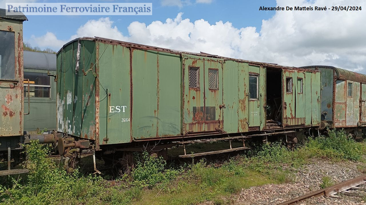 Immatriculé à la Compagnie de l’Est Dqw 26164, puis à la SNCF Dqd 19572. Remis en livrée Est 1926 après 1963 par les soins de la SNCF et immatriculé Dqd 26164. A fait partie de la rame historique de la SNCF entre la fin des années 60 et le début des années 70. Acquise par l’AJECTA en 1989.