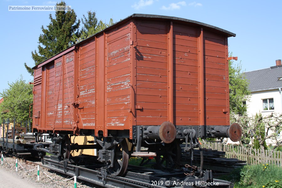 Très probablement réquisitionné par l’Allemagne au cours de la 2e Guerre mondiale, même si un tel déplacement pour un wagon aussi ancien était peu courant. Il a subi quelques modifications, notamment les volets d’aération et les supports de lanternes, typiquement allemands. Il n’a pas été récupéré après la fin du conflit car il se trouve toujours en Allemagne. Exposé sur un chariot à voie étroite par la Interessengemeinschaft Verkehrsgeschichte Wilsdruff e.V. à Wildsdruff.