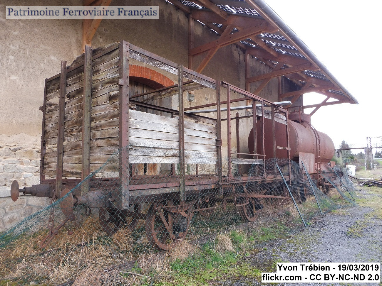Couvert provenant de l’ancienne Compagnie du chemin de fer d’Orléans à Rouen, immatriculé G-6207 (et non 6907 comme indiqué précédemment). Intégré au effectifs de l’État en 1878. Immatriculé en 1924 dans la tranche K-50734 à 50876. Boiserie à refaire intégralement. Stationné sous la halle marchandise de la gare de Felletin (Creuse), en compagnie d’une citerne à essieux OCEM. Ex collection Léchelle à Vaux-Rouillac.
