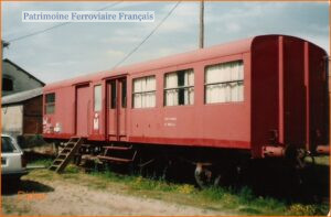 À l’origine, voiture de 1e classe à 6 compartiments, modernisée par la SNCF dans les années 50 en voiture mixte 2e classe/fourgon. Après sa radiation, utilisée comme voiture de cantonnement par la SNCF à La Rochelle, immatriculée 40 87 959 7 193-1 Us : le compartiment d’extrémité est transformé en chambre, et les deux autres compartiments regroupés en une cuisine et salle à manger. Acquise par le CFV en 1987, équipée d’un groupe électrogène et peinte en simili-livrée CIWL pour la rame restaurant.