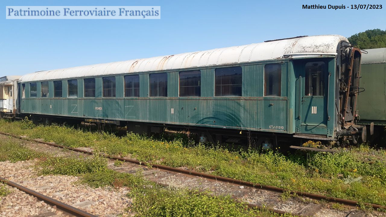 Circulait encore à la SNCF en 1986, avec l’immatriculation UIC 50 87 20-44 074-4 B10. Arrivée à l’AJECTA en 1987, et repeinte par la suite en livrée P.O.-Midi verte à filets rouges, il s’agit cependant bien d’une ex-État, et elle n’a donc jamais porté cette livrée. L’immatriculation appliquée « C10yfi 11310 » est également fausse, puisque cette immatriculation correspond à une OCEM PL sanitarisable construite pour le P.O. en 1935.