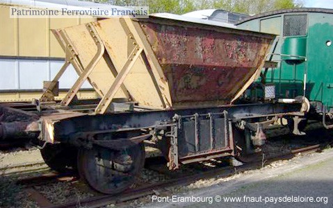 La photo ci-dessus ne montre pas les commandes d’ouverture des trappes, d’où la photo de référence ci-dessous, qui permet de mieux mesurer l’intérêt de ce wagon, peut-être unique survivant de sa série.