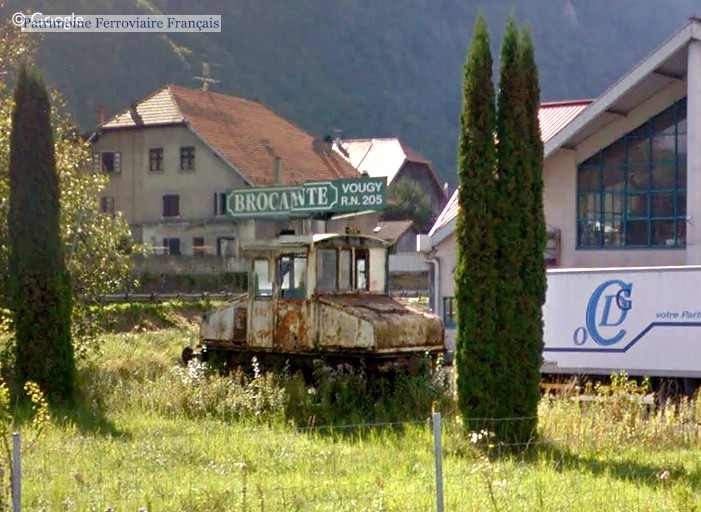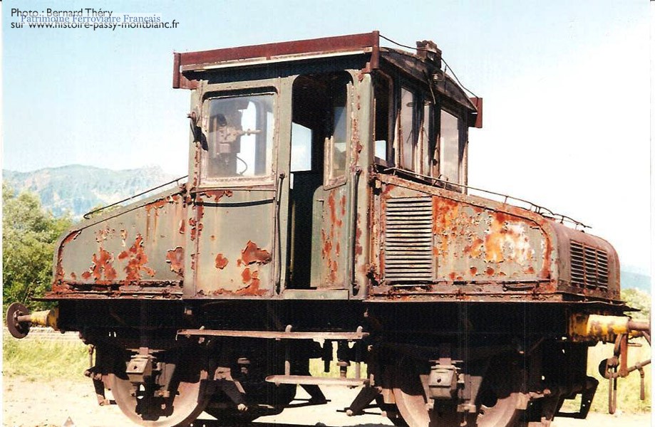 Origine exacte indéterminée. Utilisé par l’usine de Chedde à Passy où il était numéroté 1. Son équipement électrique fut révisé en 1948 par la société Télémécanique de Nanterre. En fin de carrière, il reçu les plaques constructeurs de l’ancienne locomotive sans foyer de l’usine de Chedde, construite par la SLM à Wintherthur en 1916 avec numéro 2546 (source : Christophe Gide). Vendu en 1996 à un ferrailleur. Récupéré ensuite par un brocanteur, aujourd’hui décédé, et exposé à Vougy entre la D1205 et l’A40.