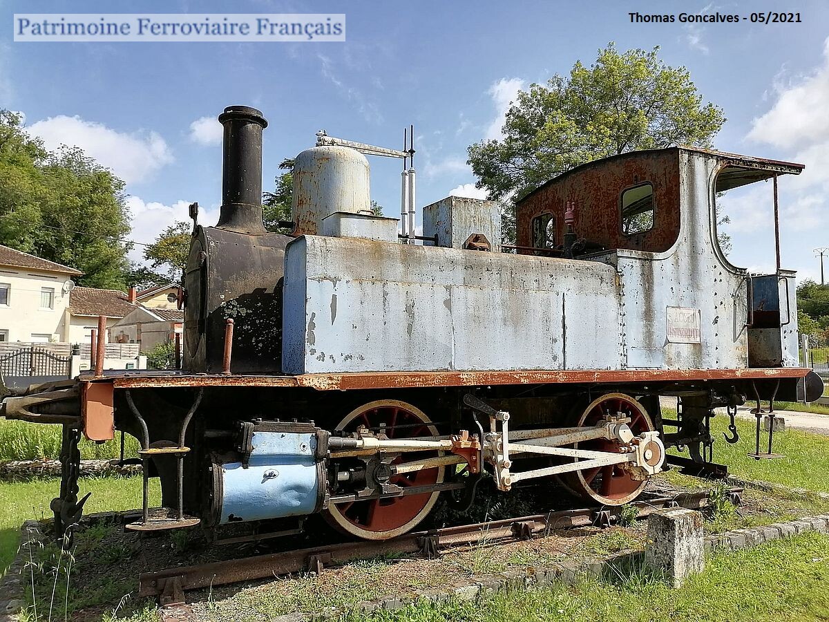 Livrée pour la Manufactures de Glaces et Produits Chimiques de Saint-Gobain à Montluçon et numérotée 1. Utilisée ensuite par la Société Ferroviaire et Routière de Bordeaux-Bègles avec le numéro 1, qui en a fait don au TTGM en mai 1974. Exposée en monument devant la gare de Guîtres. Propriété du TTGM.