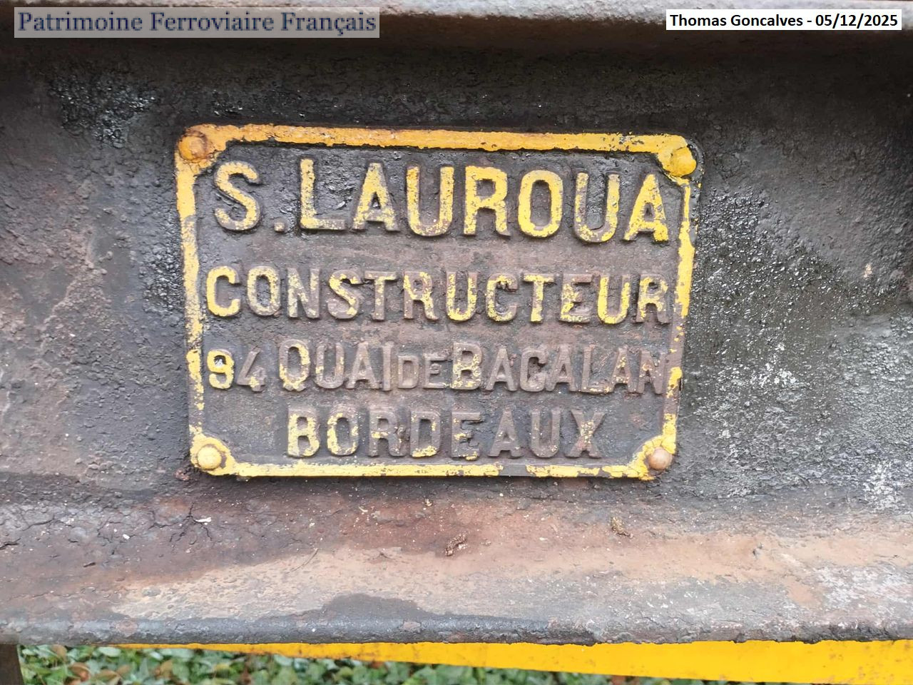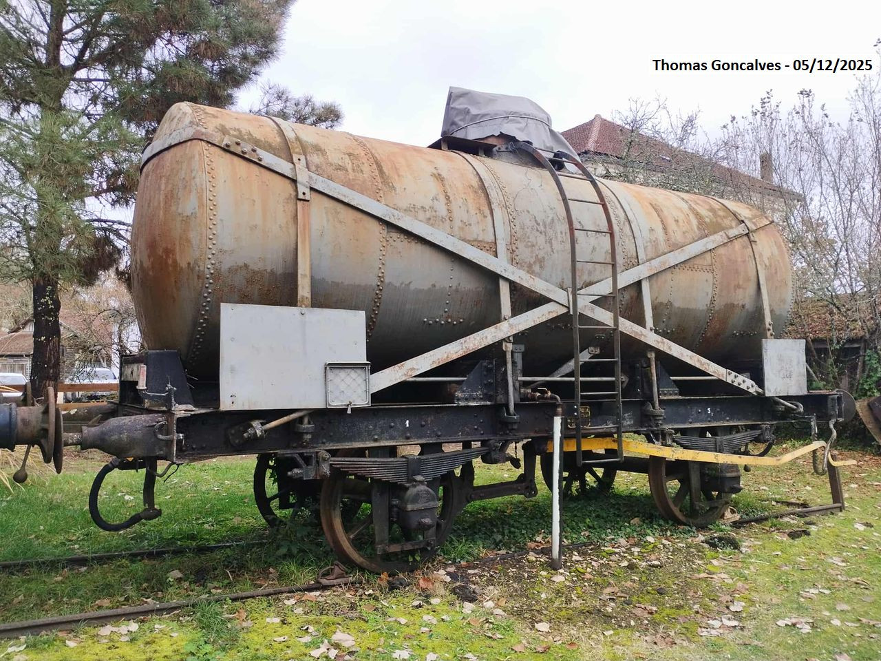 Équipée d’un frein à main à levier. Portait le marquage « Essence de térébenthine pure, Ets P. Maydieu, Paris ». Propriété du PLG. Précédemment aux CFTA Saint-Symphorien (anciennement S.E. Gironde), précédemment à la distillerie d’Arès.