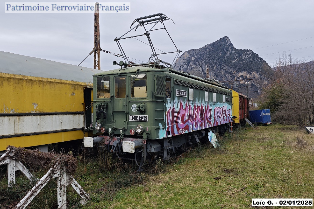 Immatriculée au Midi E-4202, puis à la SNCF BB-4202. Transformée à la fin des années 70 en locomotive de manœuvre et réimmatriculée BB-4736. Préservée depuis 1997 par l’association Rail Modélisme Ariégeois (RMA) à Tarascon-sur-Ariège.