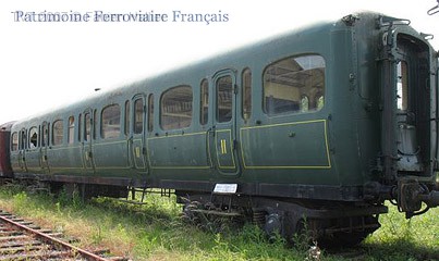 Voiture à portes latérales et à couloir central anciennement immatriculée C11yfi, devenue B11smyi 15005 à 249 en 1956 à la SNCF, puis réimmatriculée 50 87 21-x7 255-x B11tz au milieu des années 1960 avec le passage à l’immatriculation UIC.