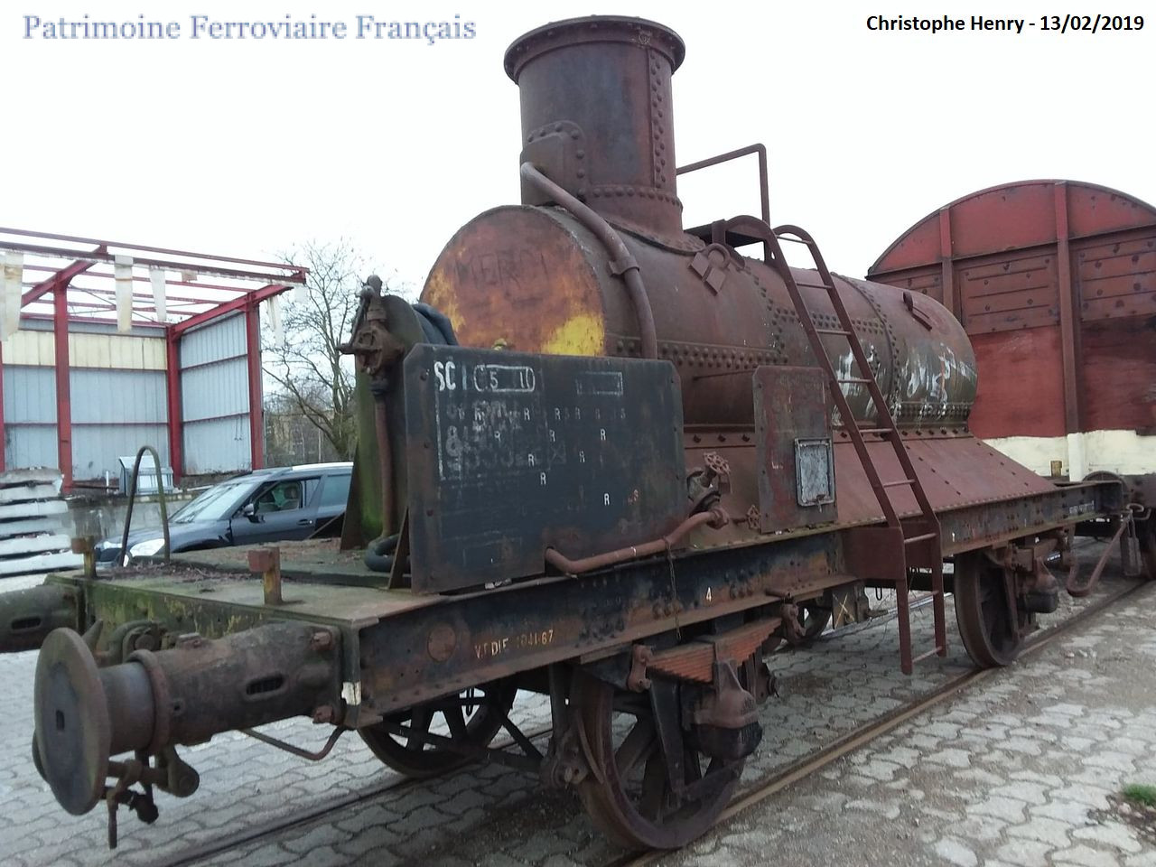 Châssis Ouest-État (selon les boîtes d’essieux) pourvu, en guise de citerne, d’une chaudière de locomotive à vapeur. Immatriculée à la SNCF SCw 955528, puis 30 87 943 x xxx-x. Affectée au service MT pour le « transport de carburant traction 2e catégorie ». Devenue « cul-jaune » avec l’immatriculation SC-1. Dernière révision à Troyes le 21 janvier 1971. Était stationnée sur une voie en impasse du triage de Trappes depuis plusieurs décennies et ne s’y trouve plus. Situation actuelle inconnue.