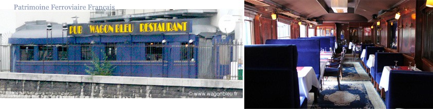 Caisse partielle d’une voiture-restaurant, utilisé par le restaurant « Le Wagon Bleu » à Paris.