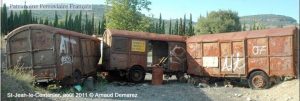Fourgon type 1, trouvé en 1986 par Roger Michel Erasmy à l’abandon derrière la gare de Perpignan et récupéré auprès du transporteur Raymondis. Restauré et utilisé comme galerie itinérante baptisée « Le Wagon de Dali ». À noter qu’il ne s’agit pas de la remorque représentée sur le tableau « Le Mystique de la Gare de Perpignan ». Celle du tableau a des panneaux en pointe de diamant, alors que celle préservée a des panneaux à renforts rectilignes.