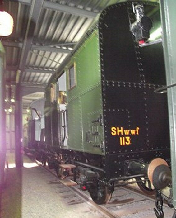 Immatriculé plus tard à la SNCF SHF 714. Sa chaudière était précédemment celle d’une locomotive.