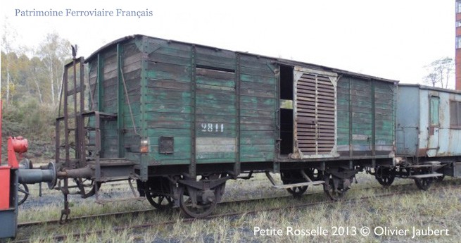 Couvert d’origine prussienne, peut-être issu des prestations d’armistice de 1918. Équipé à l’origine d’une guérite de serre-frein. utilisé par De Wendel avec l’immatriculation F60, puis par les HBL avec le numéro 2811. La porte coulissante semble résulter d’une réparation « maison ». Préservé sur le site du Parc Explor Wendel – Musée Les Mineurs à Petite-Rosselle (Moselle).