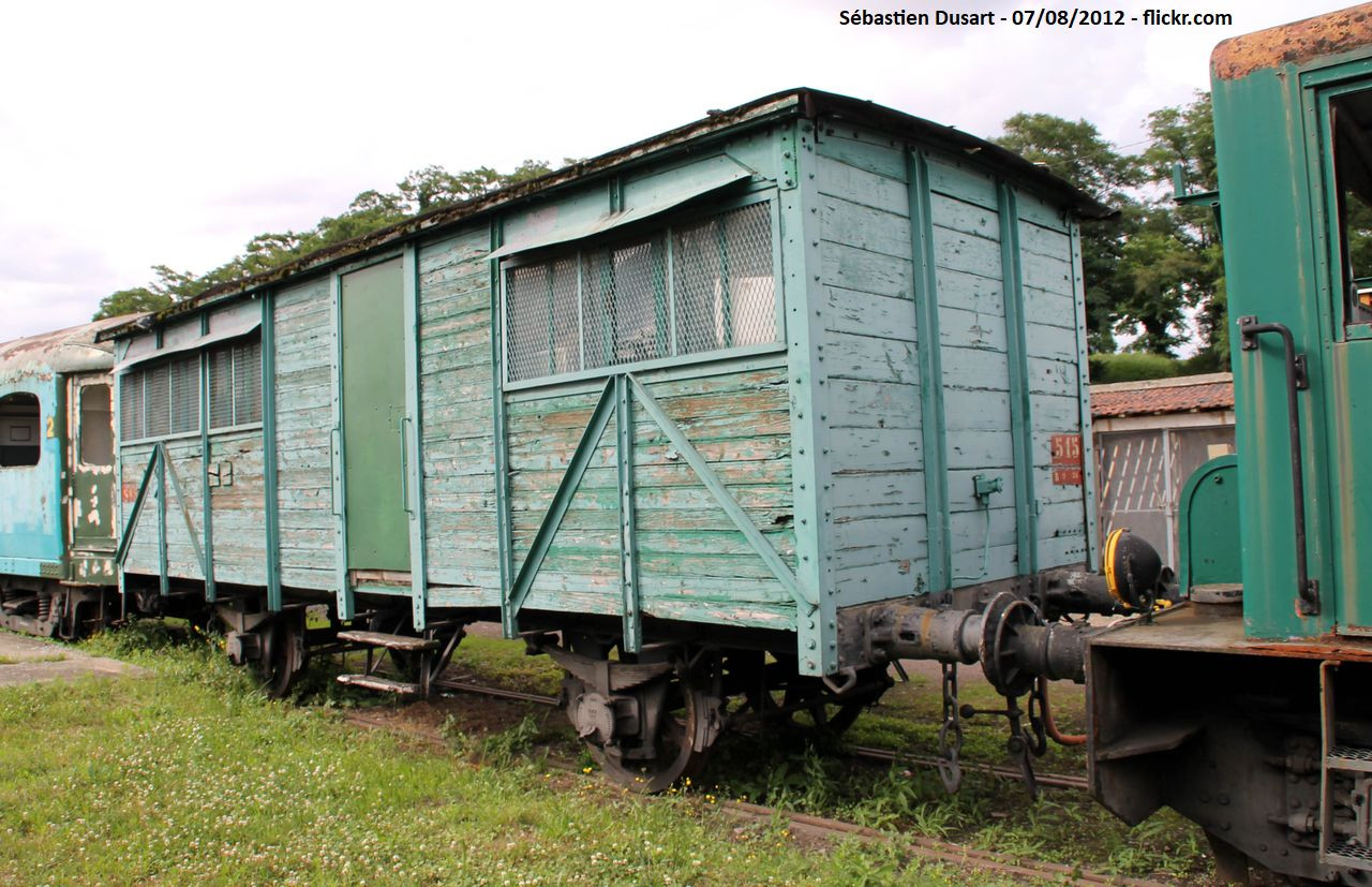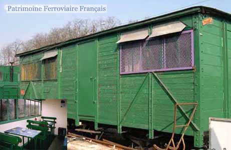 Devenu wagon réfectoire aux Houillères du Bassin Nord Pas-de-Calais. Aménagement intérieur préservé (tables et bancs).