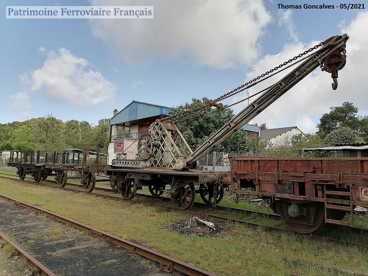 Grue de la S.E. de la Gironde, affectée à la ligne de Blaye à Saint-Ciers-sur-Gironde. Accompagnée de son wagon porte-flèche construit par les Ateliers de Labouheyre sous le numéro 1003. Propriété du TTGM.