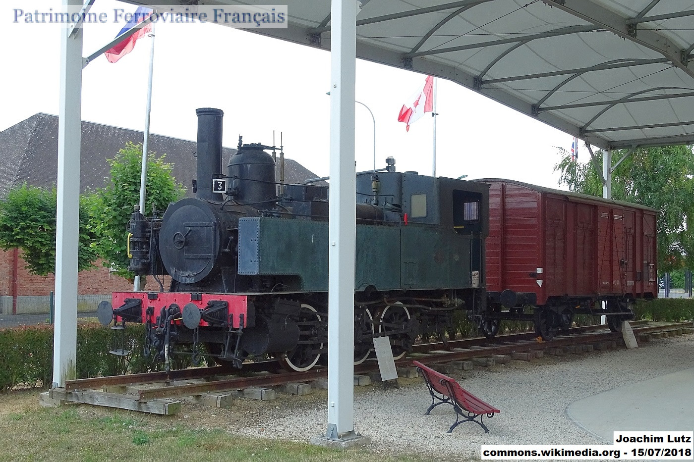 Provient du Chemin de fer de Chauny à St-Gobain (Aisne), numérotée 3 et radiée en 1967. La cabine a été modernisé, avec l’installation d’un nouvel abri.