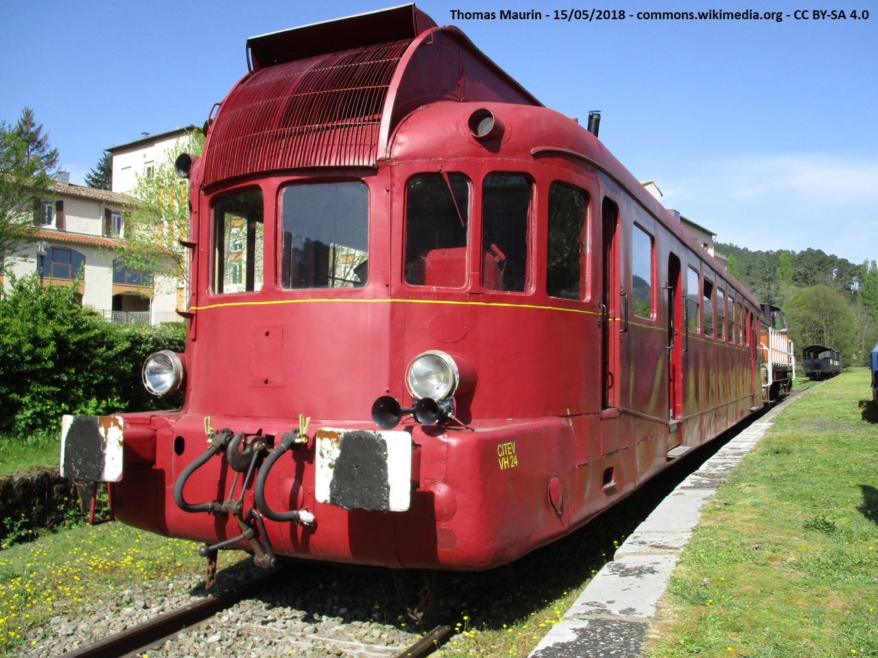 Exemplaire faisant partie d’une série de 4 engins livrés pour le compte de la Compagnie des Chemins de Fer Secondaires du Nord-Est (CFSNE), numérotés 21 à 24, qui l’a utilisé jusqu’en 1971. Acheté en 1979 par la CITEV, qui la restauré et remis en livrée d’origine grenat avec filet jaune en 2003.