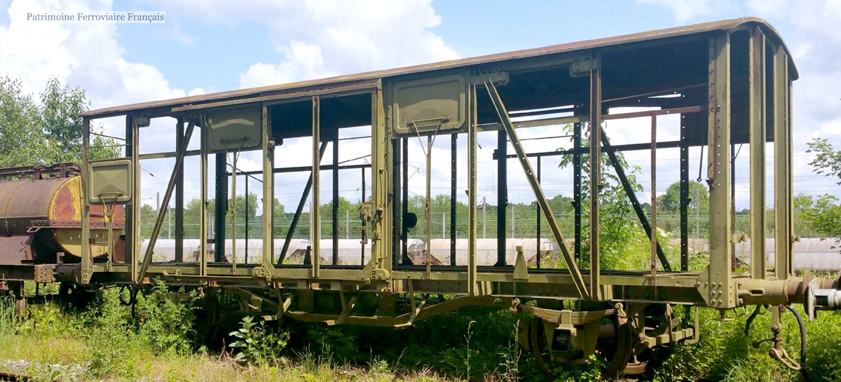 Ancien « cul-jaune » à ce couvert à été démonté, sablé et a reçu une couche d’apprêt en 2016. Garé à Tergnier en attente de restauration pendant de nombreuses années. Transféré en 2025 à Châlons-en-Champagne. Propriété de la SNCF.
