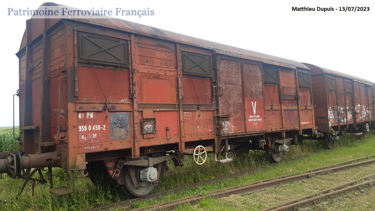 Exemplaire passé au parc de service avec l’immatriculation 40 87 959 0 450-2 Us. Dernière gare d’attache : EIV de Moulin-Neuf. Préservé par l’AJECTA.