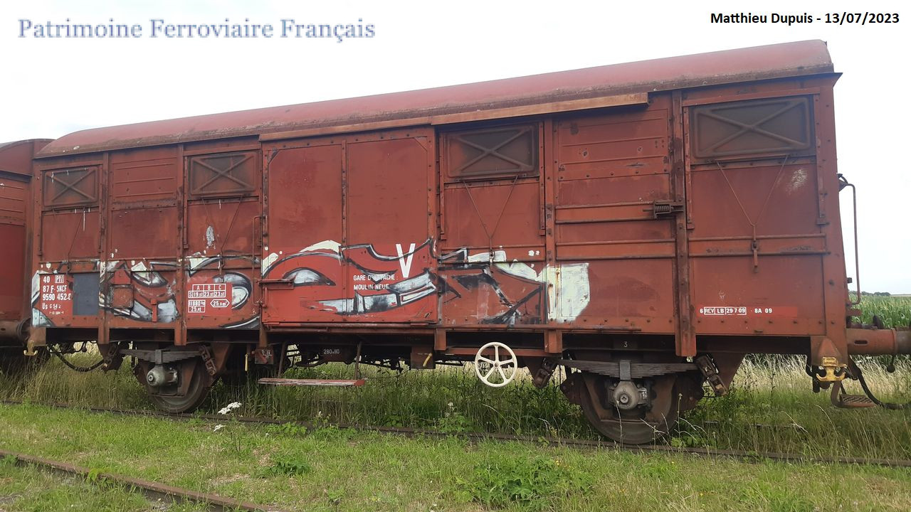 Immatriculation précédente SNCF : Kv-289183. Avait reçu l’immatriculation 87 121 7 406. Dernière gare d’attache : EIV de Moulin-Neuf.