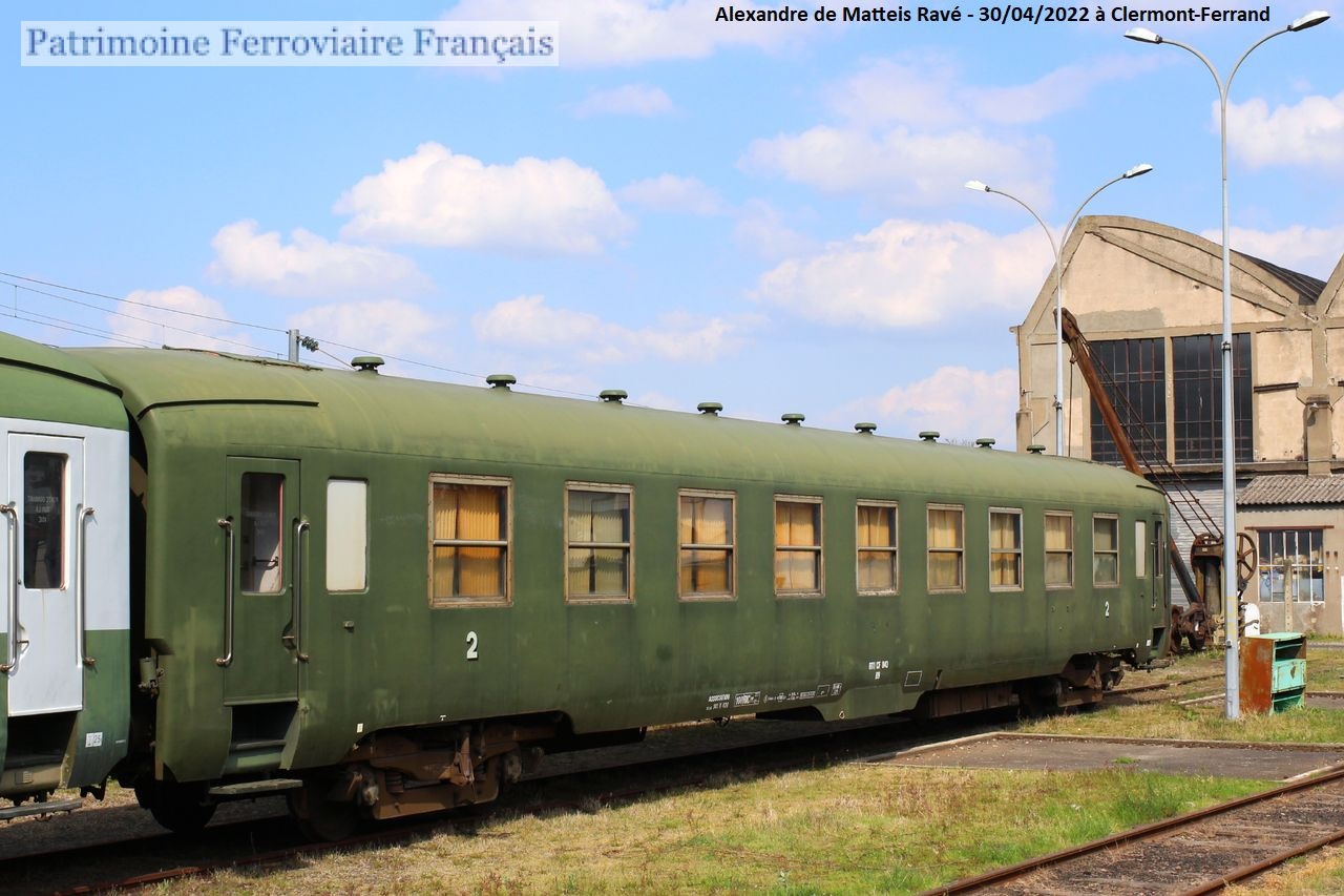 À l’origine, voiture de 1e classe A9. Déclassée par la SNCF entre 1976 et 1981. Acquise par l’association Train à Vapeur d’Auvergne – Association de la 141R420 (TVA) en 1992. À l’arrêt pour révision. Ancien numéro d’agrément RT2-CF-043 puis RT0-CF-043.