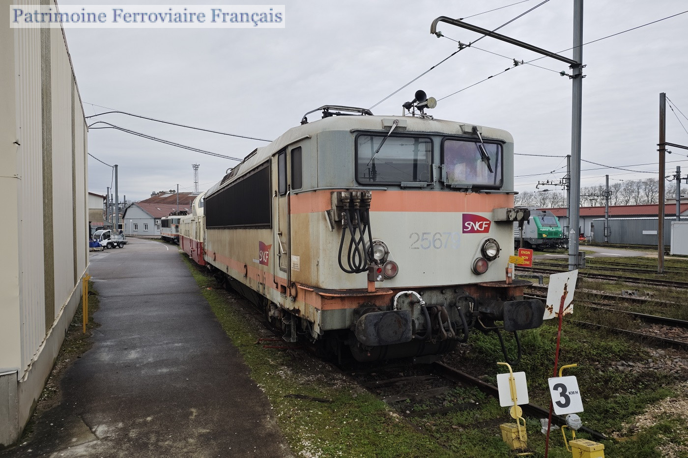 Conservée pour pièces par l’ASBB25500 au dépôt de Dijon-Perrigny (Côte-d’Or) depuis le 08 janvier 2025.
