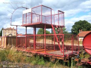 Wagonnet de draisine, ex-région 5, équipé d’un système pour le contrôle du gabarit des tunnels. Les wagons de ce type sont surnommés « hérissons ». Situé au CFHF. Actuellement dépourvu de ses essieux.
