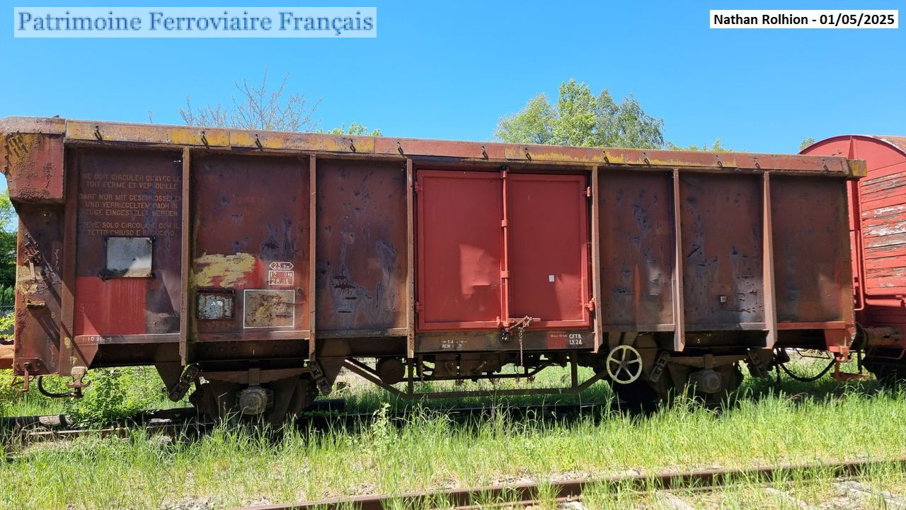 Immatriculé ITtv 93727 à la SNCF, puis xx 87 576 xxxx Tms sous le code de répartition T40. Préservé au TTML. Ancien numéro d’agrément RT2-LY-24.