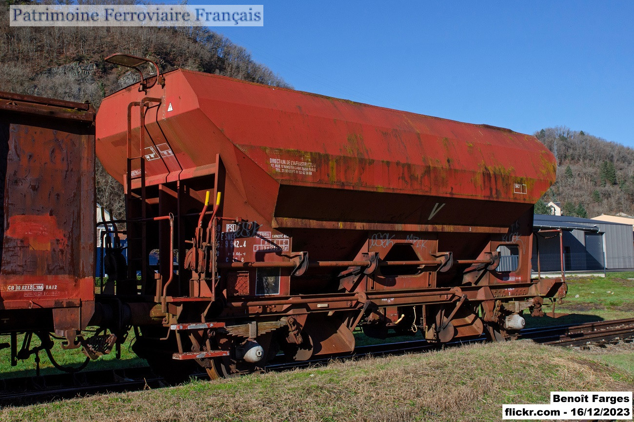 À l’origine wagon trémie à toit basculant type Tds, transformé ensuite en wagon ballastière C12.6 pour les besoins de l’Infra, avec notamment la suppression du toit basculant, réimmatriculé 40 87 952 9 942-4 Us. Préservé par le CFHA.