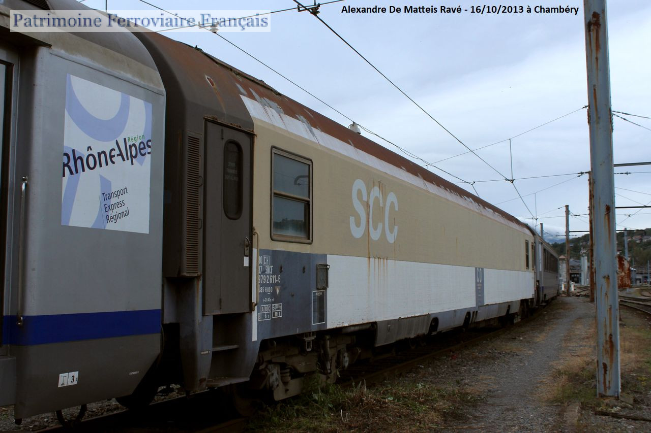 Voiture Spéciale Conférences Cinéma (SCC), construite sur un chaudron neuf de voiture-lits MU, montée sur bogies Y24s et équipée d’un groupe électrogène.
