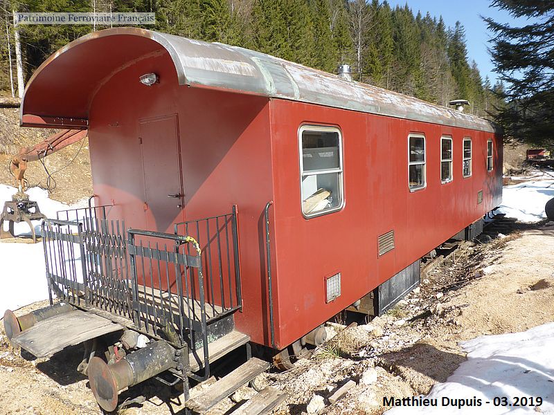 Provient des Chemins de Fer Fédéraux suisses (CFF/SBB), où elle était immatriculée 40 85 96 32 800-0 X. Dernière gare d’attache : Brugg. Ancien wagon réfectoire. Préservée par le Coni’fer.