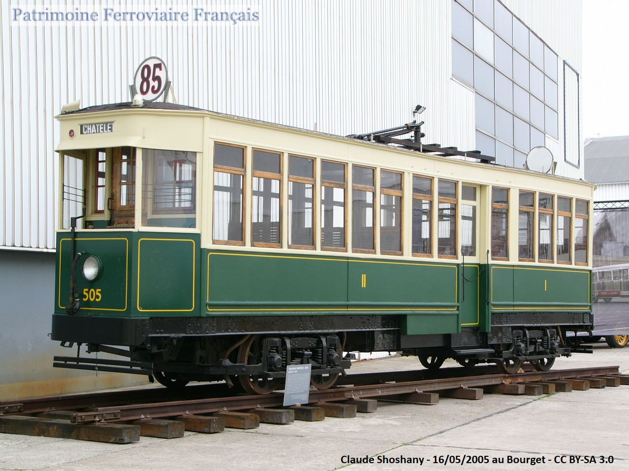 Donnée gracieusement par la Société Mosellane de Sidérurgie à l’Association Belge du Musée du tramway (AMUTRA) en 1966 et transférée à Bruxelles. Stockée dans le dépôt de la rue Eloy de la Société nationale des chemins de fer vicinaux (SNCV), puis transférée le 13 mars 1972 au dépôt de Woluwé de la Société des transports intercommunaux de Bruxelles (STIB). Le 25 mars 1994, confiée sous convention à la RATP pour remise en état et restauration afin de la faire rouler sur la ligne de tramway T1 Saint-Denis – Bobigny, l’AMUTRA restant propriétaire de la motrice. Transférée le 7 novembre 1994 à l’atelier STIB de Cureghem pour restauration, renumérotée 505, puis revenue le 24 avril 1995 à Wolluwé pour essais.