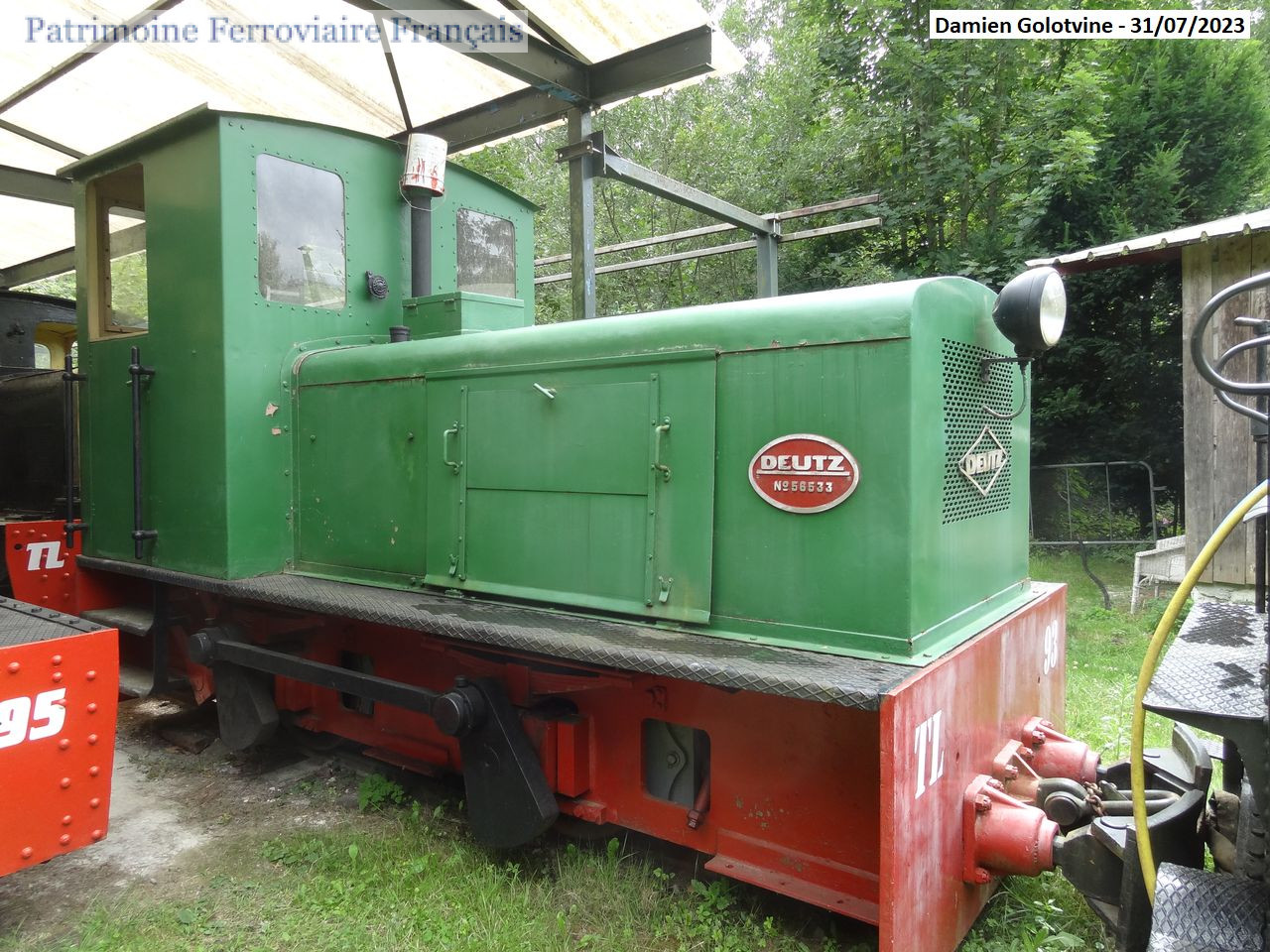 Posted in Locotr. therm., Mat. étranger, V. étroite VE60 Belgique locotracteur Deutz 56533 – Tacot des Lacs Author: M.D. Published Date: 20 août 2020 0 408 Mis à jour le 15 Fév. 2026 par M.D. Construit par Deutz en 1957, numéro 56533 Type : A4L514F Longueur : 4,95 m Masse : 15 t Moteur : Deutz A4L514 à 4 cylindres en ligne refroidi par air de 55 ch Vitesse limite : 16 km/h Essieux reliés par bielles Numéro 93 au Tacot des Lacs Ci-dessous, 6 fiches au hasard... Rafraîchissez la page et faites des découvertes !...VE60 tram. Pithiviers-Toury couvert...VM HBL locotracteur Berry 2755 T4 x...VM Suisse voiture B-32 – GECPAngleterre couvert Saltley « 101 » ...PLM locotracteur Y-BE-14039 - MPTURAllemagne vapeur 040 Henschel 25724... PFF propose actuellement 4,124 fiches et 3,474 photos.