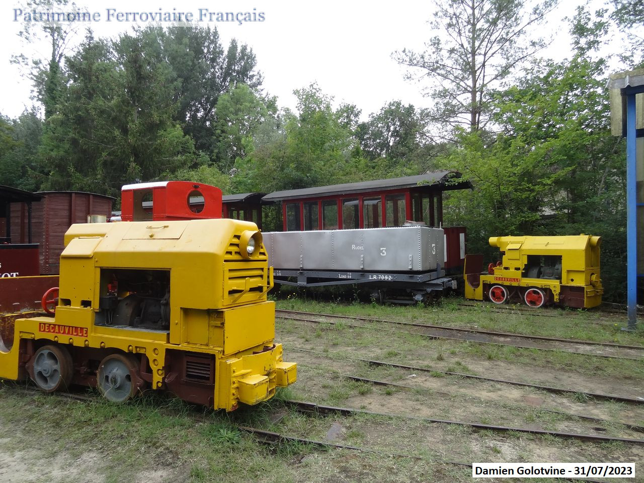 Deux locotracteurs non identifiés préservés par le Tacot des Lacs. Un des engins est équipé d’un démarreur à inertie.