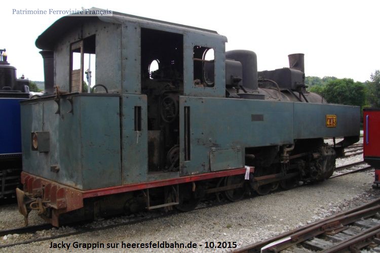 À l’origine, locomotive à tender séparé commandée par l’armée allemande. Achetée en mars 1946 par le Tramway de Pithiviers à Toury (TPT), , modifiée en locomotive-tender immatriculée 4-13 et utilisée jusqu’à sa fermeture en 1964. Achetée ensuite par le Chemin de Fer Touristique de Meyzieu (CFTM) et baptisée « Le Rhône ». À la fermeture de ligne, elle est transférée à Montalieu. En 2000, elle est transportée au CFVO (Chemin de Fer de la Vallée de l’Ouche), le propriétaire restant le CFTM. Achetée en automne 2015 par l’APEMVE.