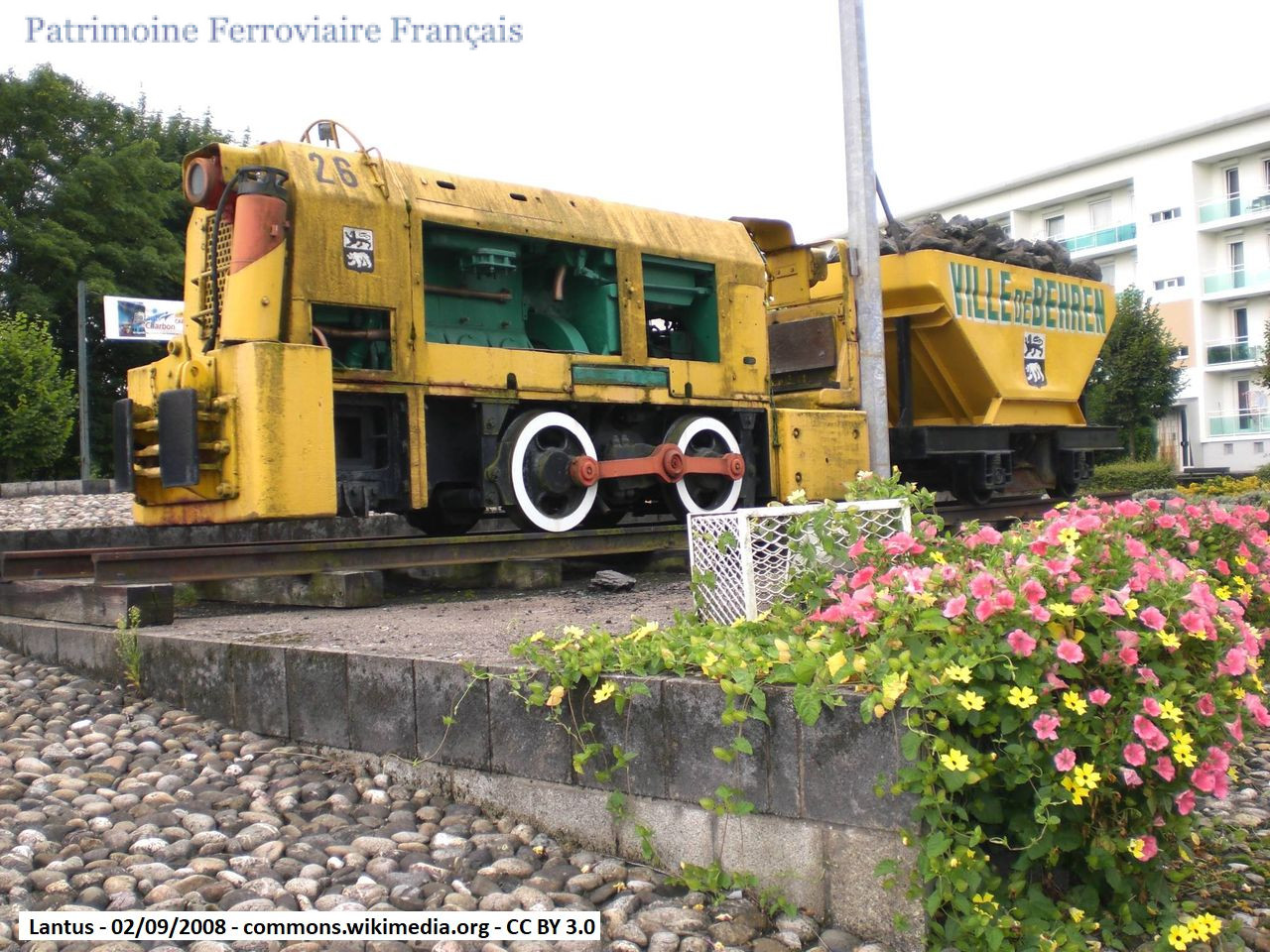 Démarrage par air comprimé ou manivelle. A perdu ses panneaux latéraux. Exposé en monument en compagnie d’un wagonnet à trémie sur un rond-point à Behren-lès-Forbach (Moselle).