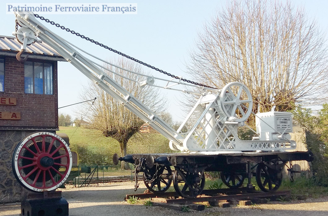 Ex Voies Ferrées des Landes. Préservée au CFTHQ. Précédemment à Sabres, et dans ce cas, il s’agirait de la grue immatriculée Q-1. Elle serait théoriquement classée MH (notice PM40000221).