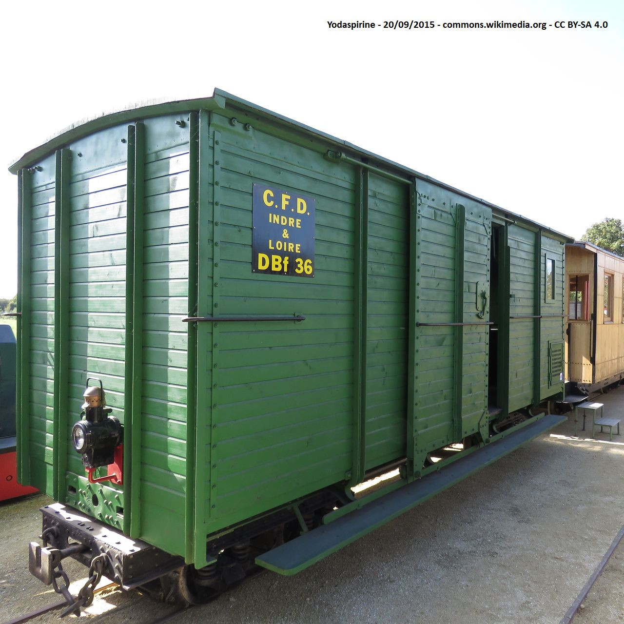 Fourgon équipé d’un compartiment postal et d’une niche à chien. À l’origine en voie métrique et à essieux, posé sur bogies à voie de 60 cm.
