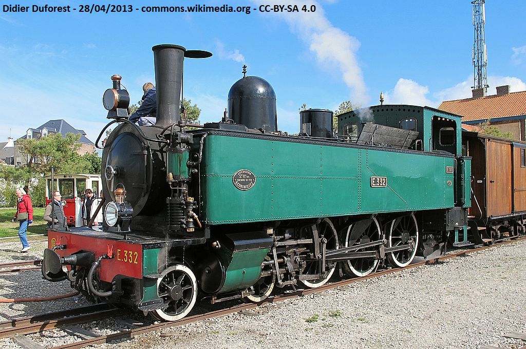 Issue d’une série de douze machines commandées par la Compagnie des Chemins de fer de l’Ouest pour le Réseau Breton et immatriculée E-332. En 1967, la machine est préservée par le chemin de fer de Blonay-Chamby (Suisse), puis acquise en novembre 2003 par le CFBS. Hors-service.