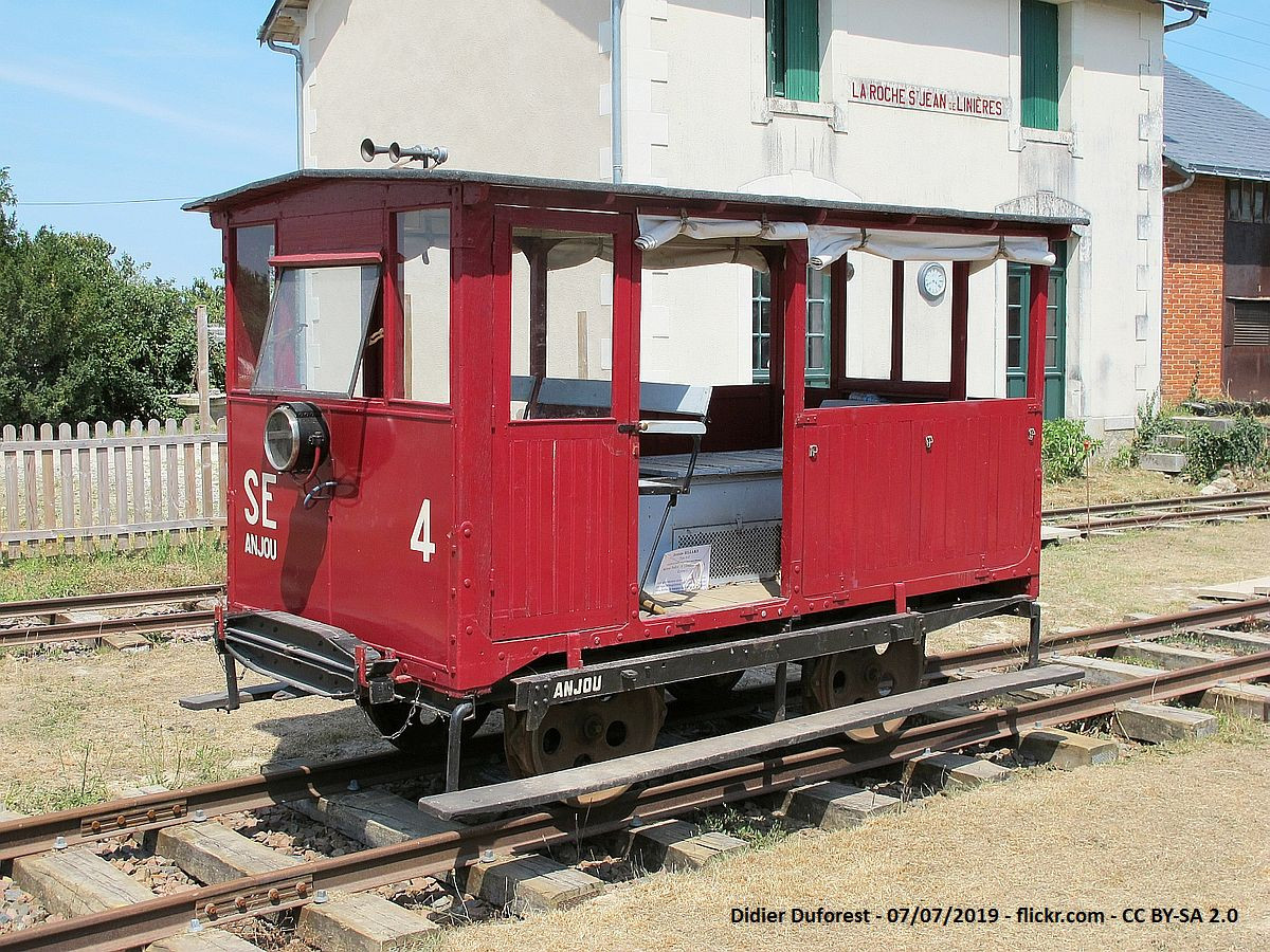 Utilisée par la S.E. sur le réseau Breton à voie métrique. A été ensuite transformée pour la voie normale, et aurait été utilisée sur le réseau S.E. Gironde (1). Plus tard, numérotée 261 par la CFTA. Préservée sur le chemin de fer touristique de la Vallée de l’Ouche (CFVO). Achetée par l’AAPA en 1992 à l’état d’épave, remise à voie métrique et restaurée entre 1993 et 1994. L’association lui a attribuée le numéro 4 ( numéro S.E. origine inconnu).