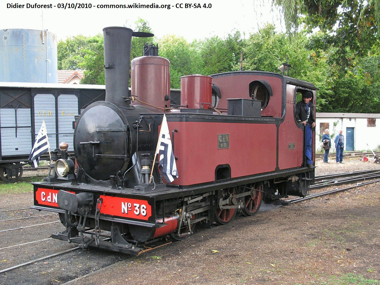 Livrée pour les Chemins de fer des Côtes du Nord (CdN), numérotée 36 et utilisée jusqu’à la fermeture du réseau en 1956. Exposée à partir de 1957 en monument sur le parking de la gare SNCF de Saint-Brieuc (Côtes-d’Armor). Sauvée du ferraillage en 1971 par un particulier et stockée au dépôt de l’AJECTA à Longueville (Seine-et-Marne). Préservée et restaurée par le MTVS. Propriété de deux particuliers.